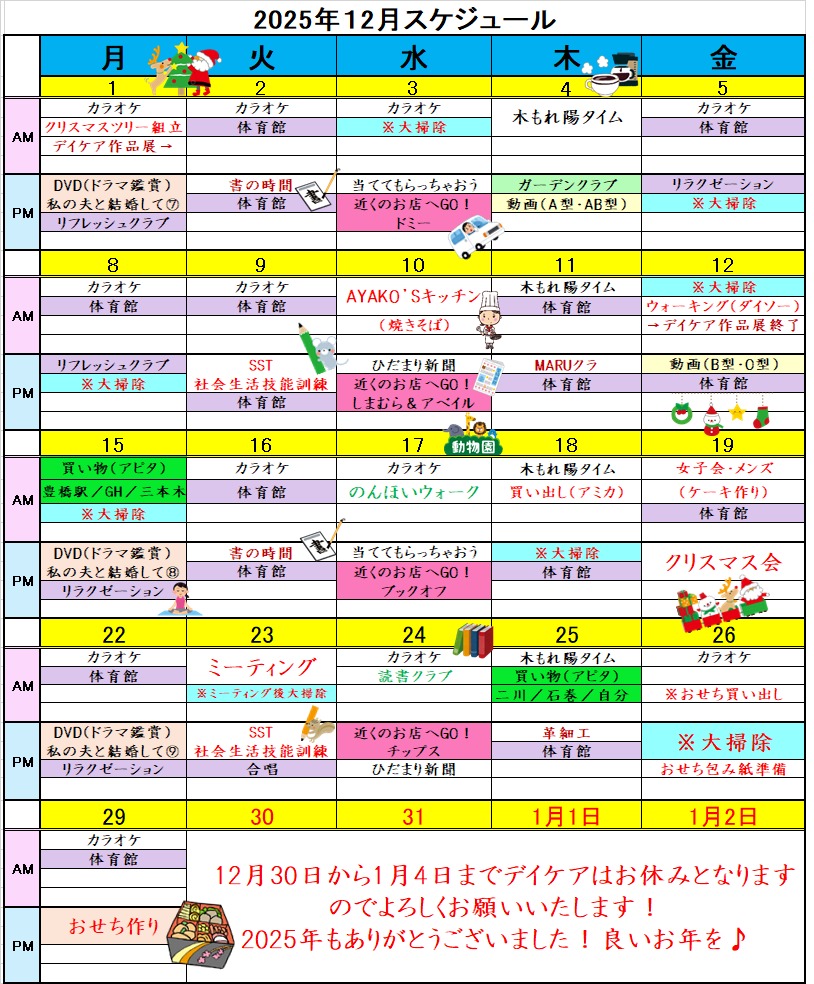 デイケアのプログラムやイベントのご紹介、職員の紹介や日々の様子などを発信していきます。